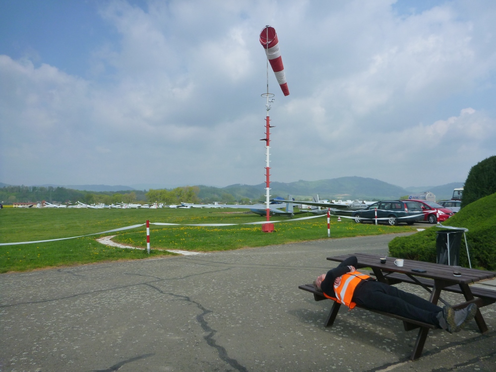 Před malou chvílí odstartoval chroust. Fouká svěží západní vítr. Nebe kolem letiště je plné kumulů, je jich tu tak 7/8. Uvidíme co tam najde...